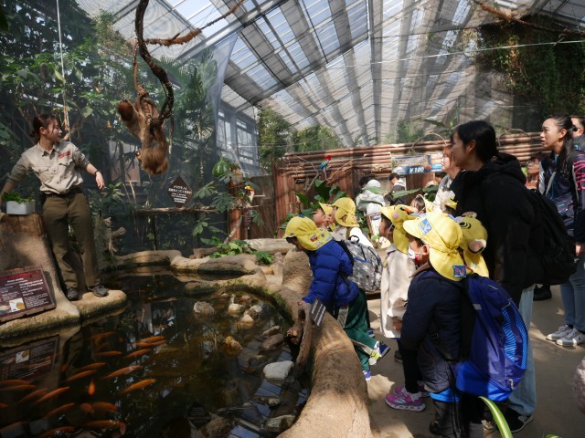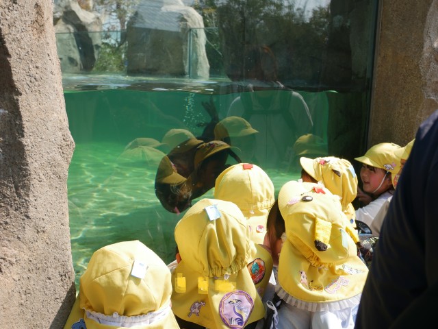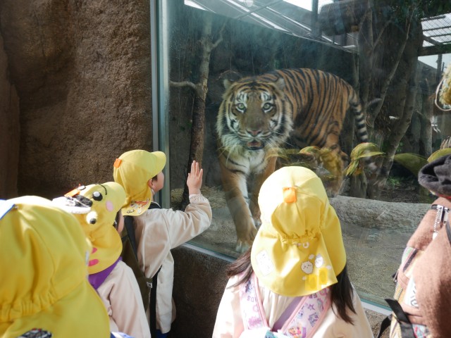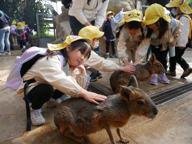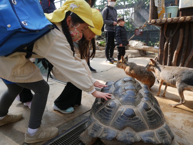 年長組の子どもたちと先生たちとの最後の思い出作り。卒園遠足に行って来ました。バスに乗って出発。たくさんの動物を間近で観察したり、実際にふれたりして、思う存分楽しみました。