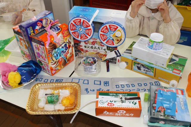 「お店屋さんごっこ何屋さんがしたい?」と聞くと「おもちゃ屋さん!」「おかし屋さん!」「ケーキ屋さん!」「お花屋さん!」「温泉!」と、どんどんやりたいお店が出てきて、もうお店決めの日からやる気満々なばら組さん。そこからひたすら、作る作る作る・・・。でも、毎日ちがう物を作るから楽しいー!!