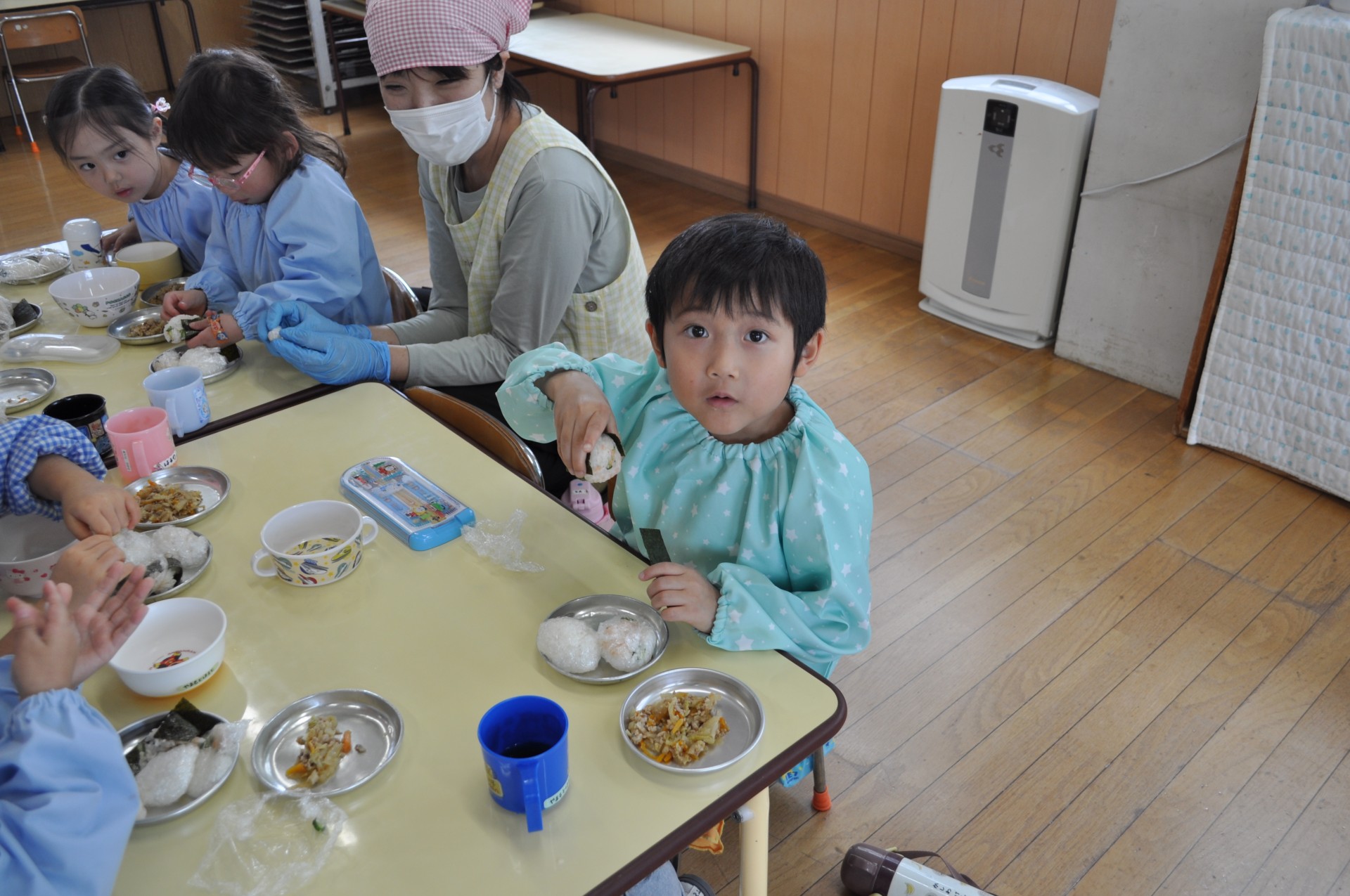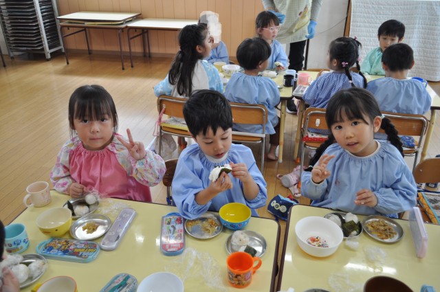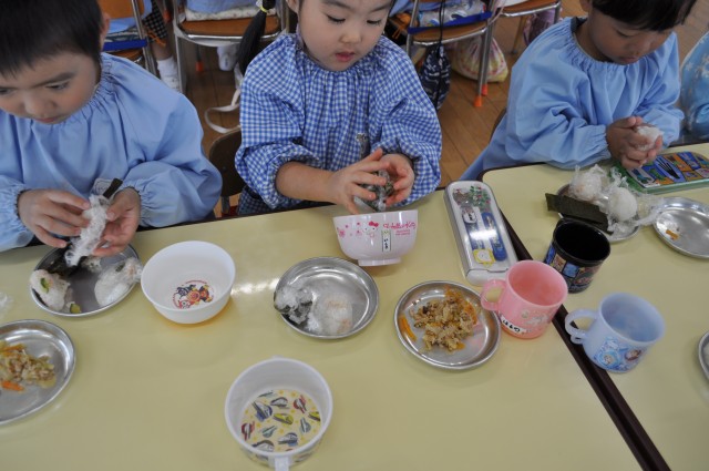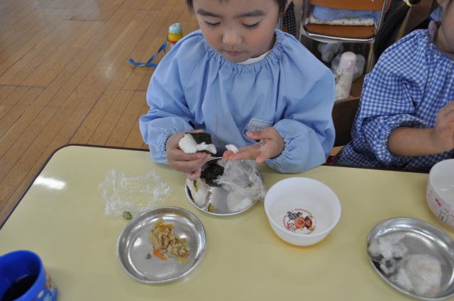 今日のばら組は、おにぎり作りをしました。