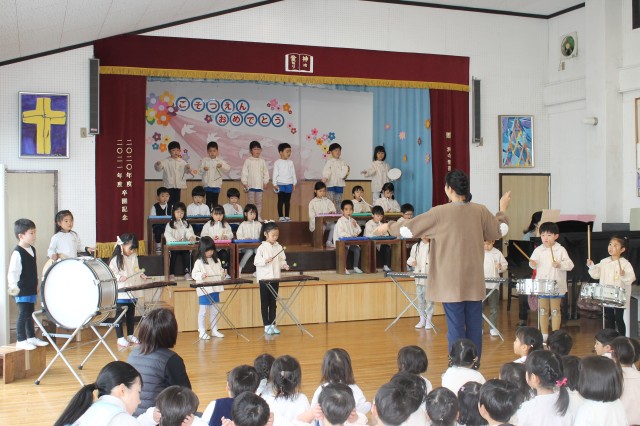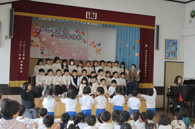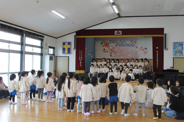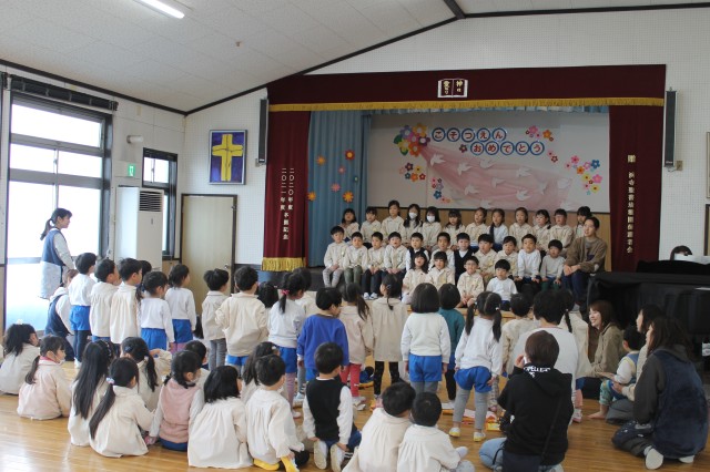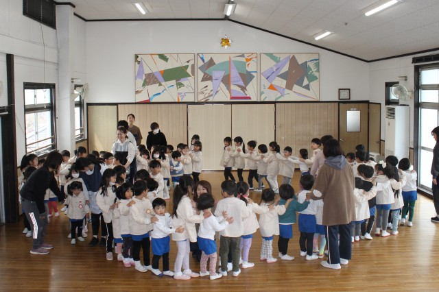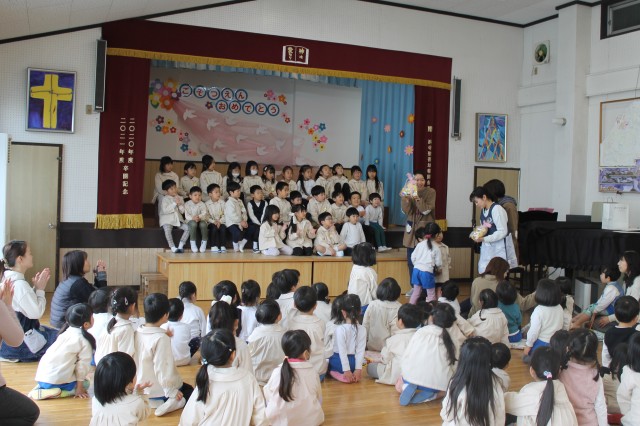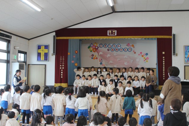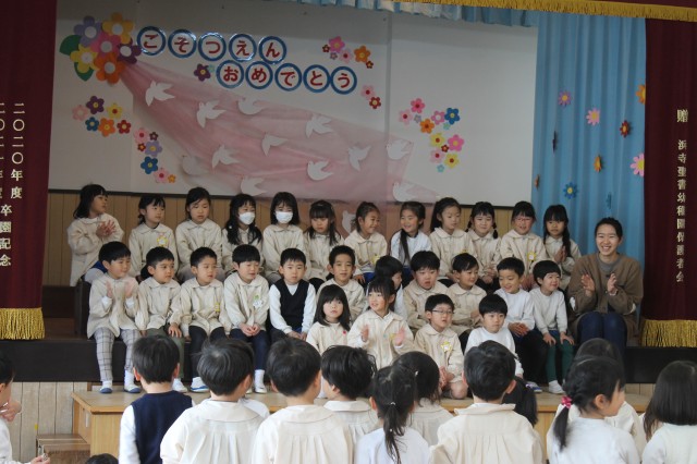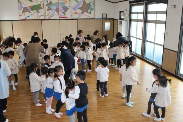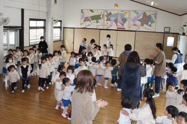 紙吹雪の中、ちょっぴり恥ずかしそうな たんぽぽ組さんでした。