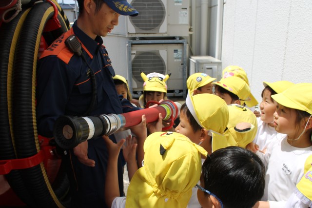 消防士さんも参加してくださって、火災避難訓練を行いました。