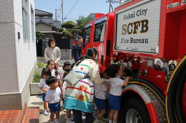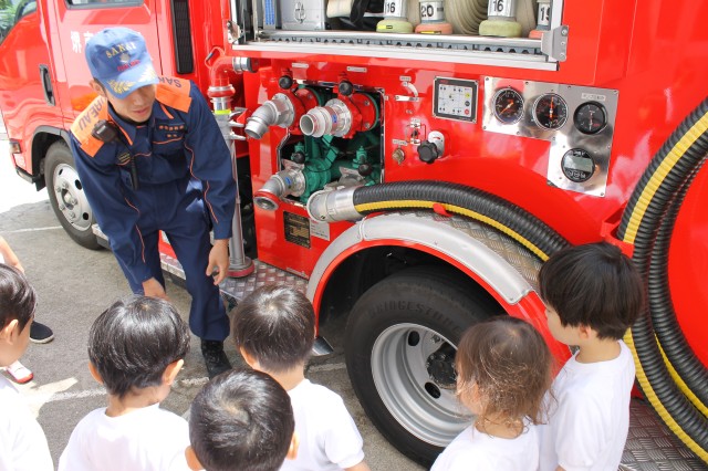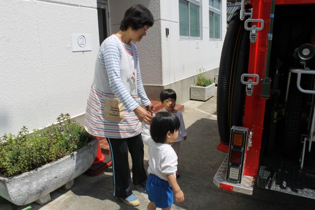 最後に消防車を傍で見たり、質問することが出来て、子どもたちも良い思い出も出来ました。
