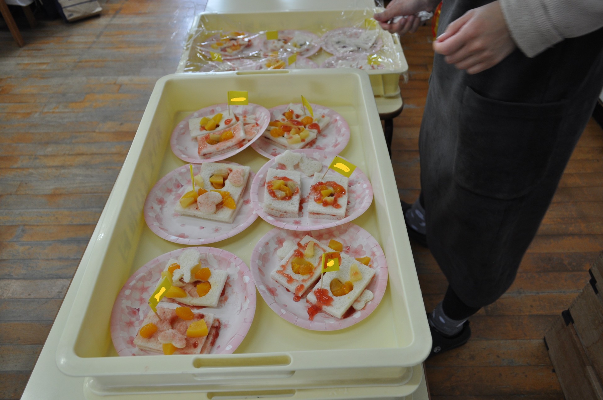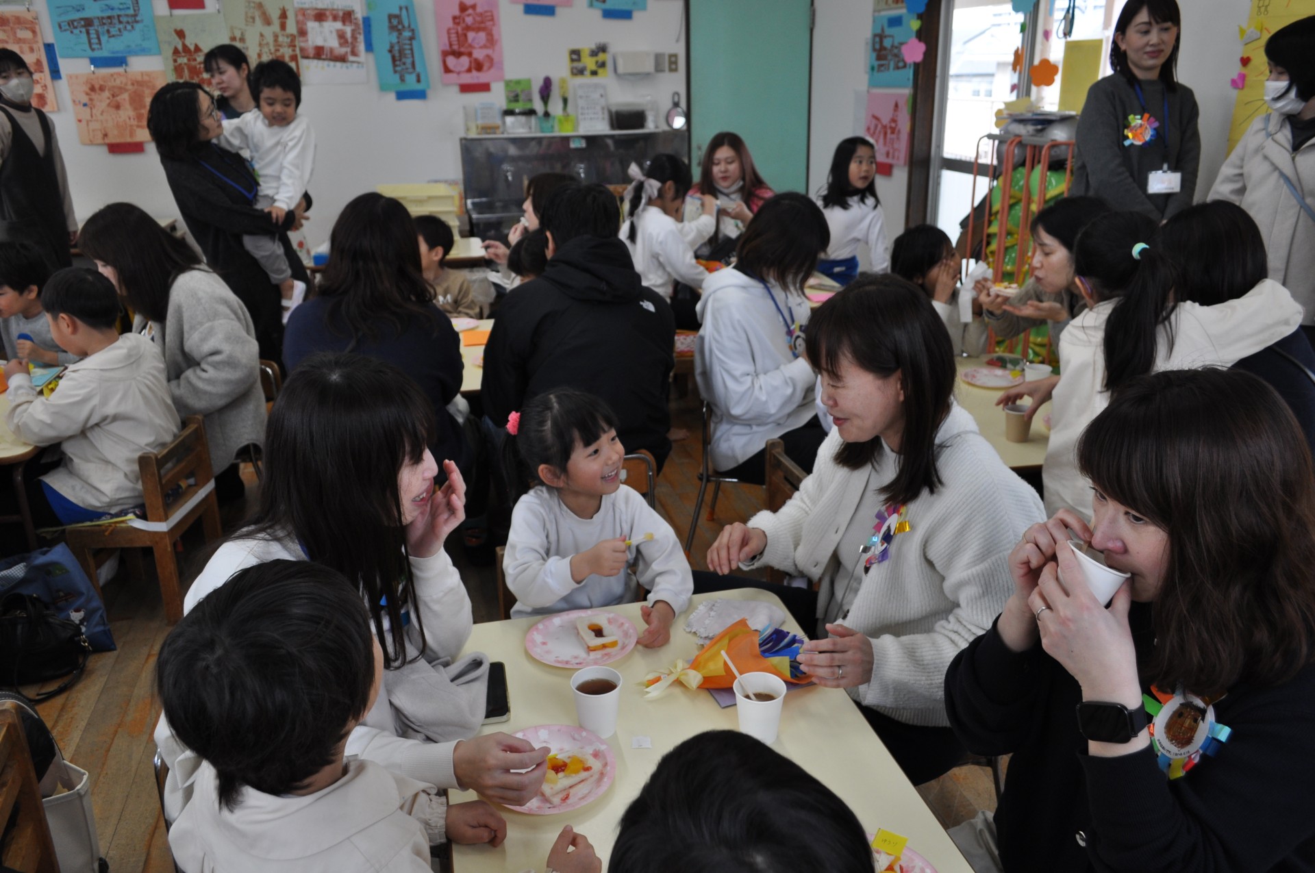 最後は、子どもたちが手作りしたジャムサンドイッチを食べました!「おいしい?」「これつくったんだよ!」