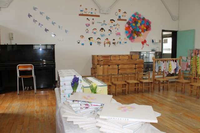 自分で描いた表紙のアルバム。この一年間のたくさんの思い出が詰まった1冊です。一番後ろには先生たちからのメッセージがあります。