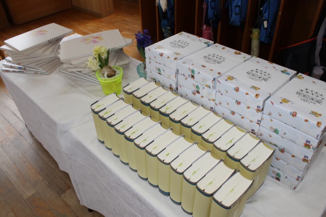 そして、辞書は保護者会からのプレゼント。わからない言葉を調べる時に使ってね。