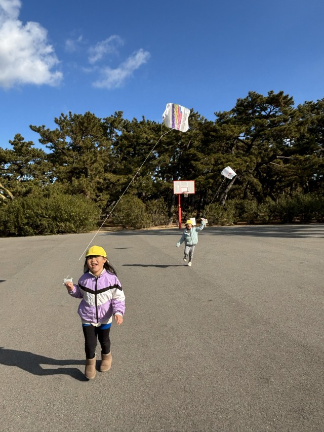 いつの間にか、寒さも忘れ、夢中で走っていました。自分の作った凧が空高く上がることが、嬉しくて♡
