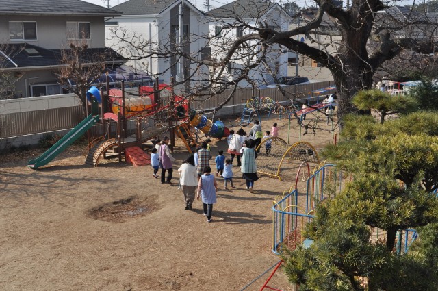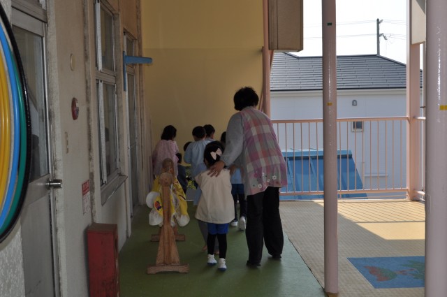 どのクラスの子どもたちも、食事を中断して、先生の後について逃げ出しました。泣いている子どもは一人もいませんでした。