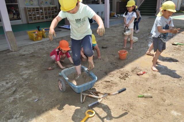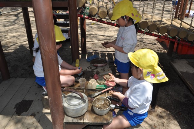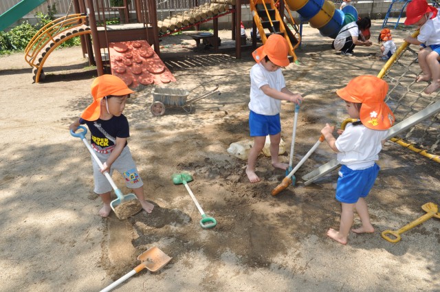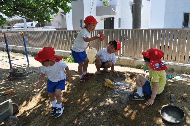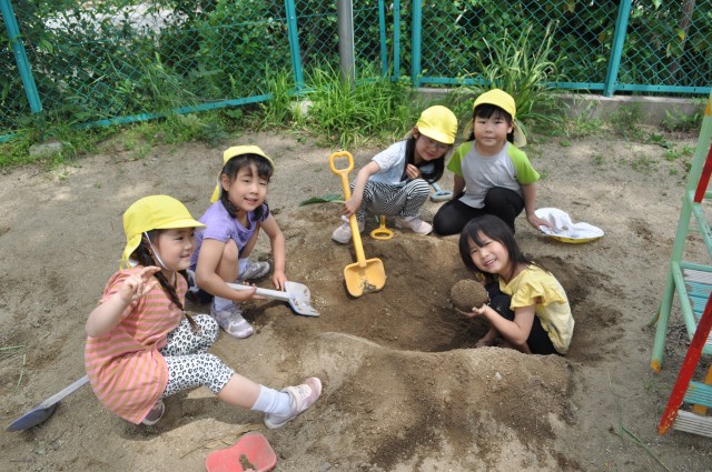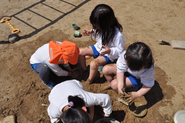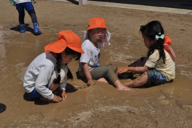 お友だちと一緒に全身で泥や土、砂、水に触れドロドロになることは、よりお友だちとの関係も身近なものとなり関りも深まります。