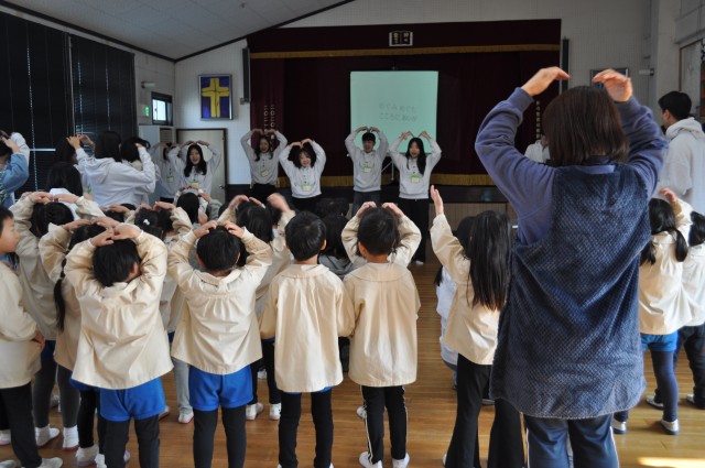 日本語の賛美を教えてくれました。振り付けもあり、頭の上に両手をあげている「愛」のポーズはみんなお気に入り♡
