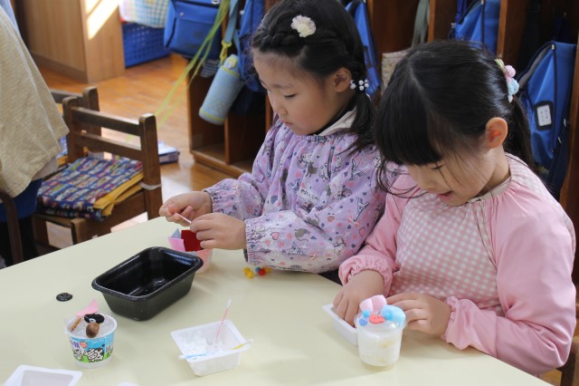 もうすぐ楽しいお店やさん。各クラスそれぞれが、お店に並べる品物づくりの真っ最中!どんなものを作りたいか、子どもたちに聞いたところ…