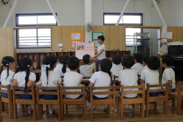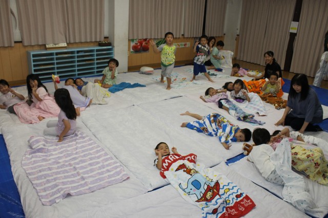 大好きなお友だちと一緒に寝れることが嬉しくてたまらない子どもたち。 就寝前には、『あおぞらえんのおとまりかい』という絵本を読みました。 寝る前には、神様にお祈りをしました。「お泊まり会の1日目、とっても楽しかったです。神様、ありがとうございます。明日も守ってください。」