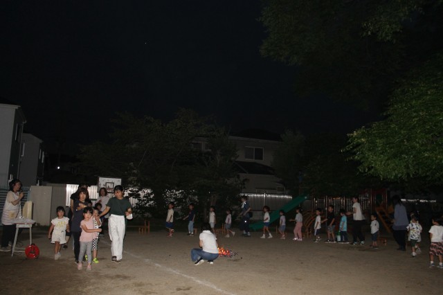 キャンプファイヤーでもゲームをしました!ジェスチャーゲームや○×ゲーム、火の周りを移動しながら回ったり・・・何をしても楽しい!!お友だちと先生とこの日だけの特別な思い出ができました!
