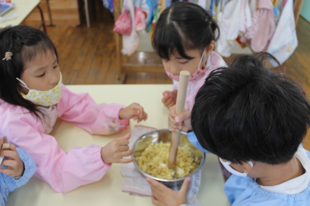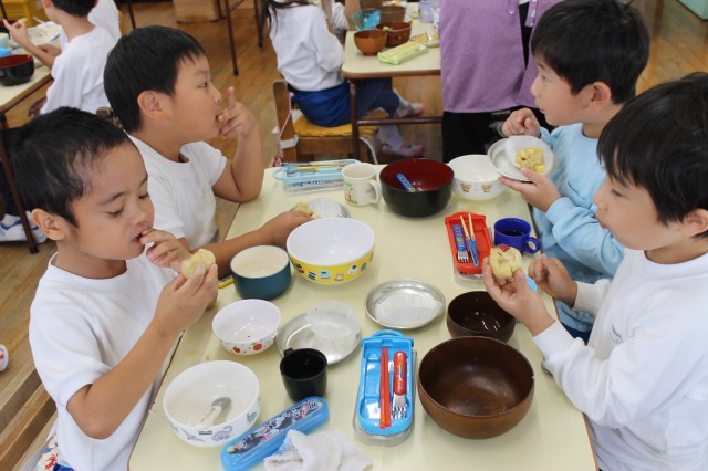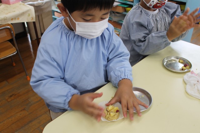 今日は秋の味覚「さつま芋」を使ってクッキングをしました。