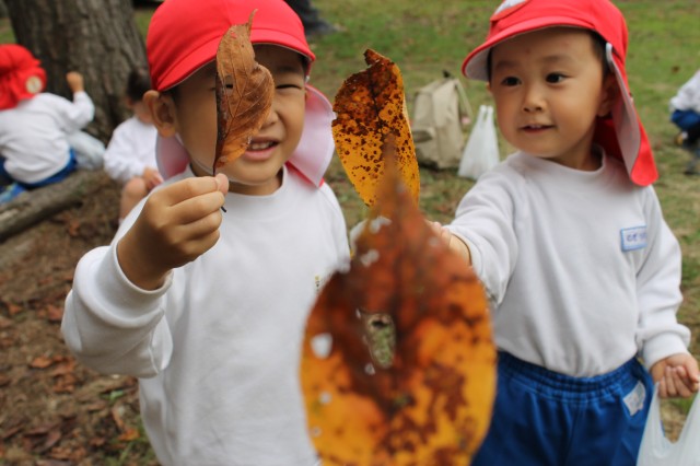 穴の開いた葉っぱを見つけたり、秋の匂いのする広い公園で楽しい半日を過ごしました。