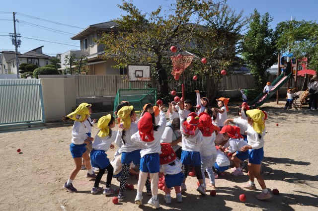さて、運動会が終わると一気に秋の行事に移っていきます。まずは秋の遠足。秋の自然を体いっぱい楽しめますように。秋は収穫の季節でもありますね。普段当たり前になっている食物が与えられていることへの感謝とともに、自分の体・食べるものを大切にすること、また他の国には食物が十分に与えられていない子どもたちがいる事にも目を向ける機会を持っています。~11月 園だより より~