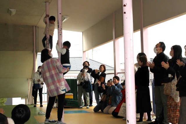 まずは、幼稚園生活の中で、これは自信を持ってるよ!という運動遊びを一人ずつ披露していきました。「運動は苦手...」という子も、この日を目指して何度も何度も練習して、いつの間にか「今日も跳び箱するよ」と積極的に頑張る姿が♡そして、友だちの頑張る姿を見て、「わたしもやってみようかな」「○○くん、がんばれー!なんか上手になってきたんじゃない?」と、みんなで影響し合い、育ち合っていました。どの子も本当によく頑張りました!!
