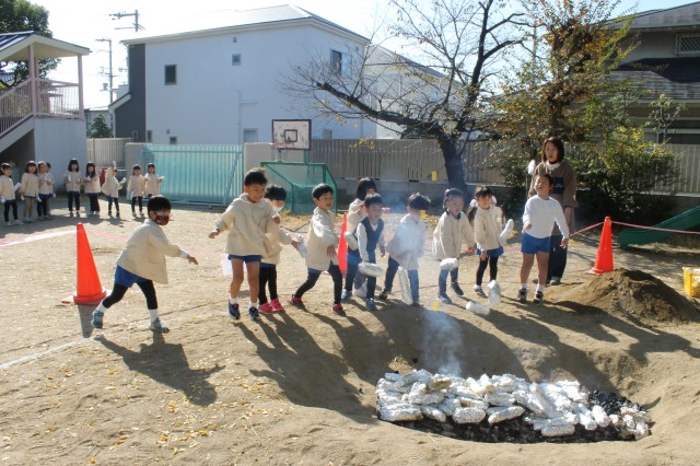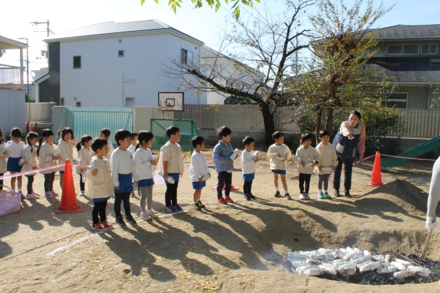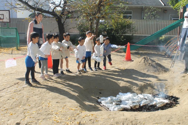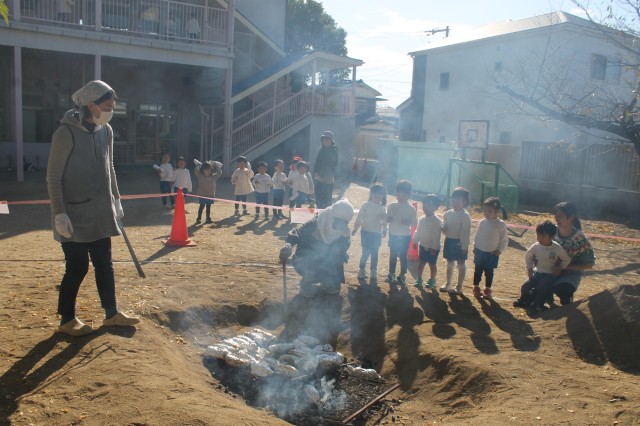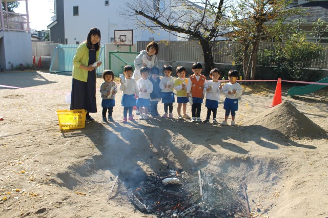 今日は待ちに待った焼いもの日。寒い朝になりましたが、みんなウキウキで登園してきました。