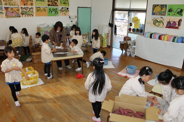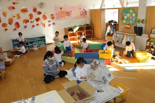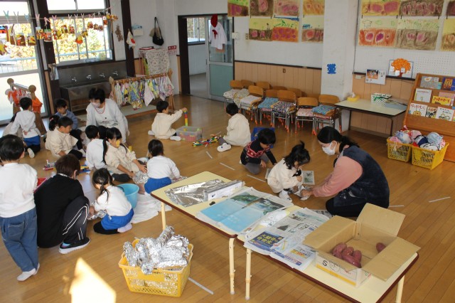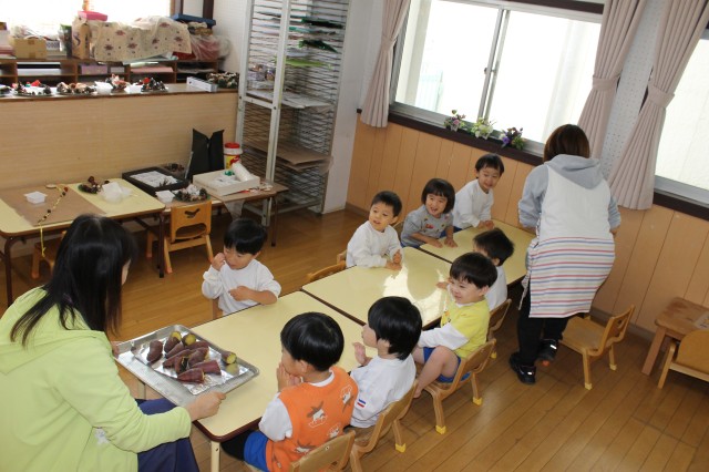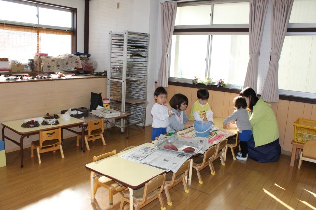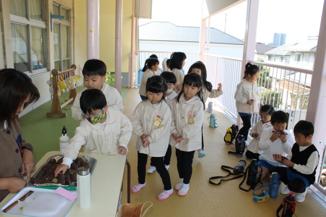 焼いもが焼ける匂いをしっかり嗅いで、出来上がるまでお部屋で活動をして待ちました。