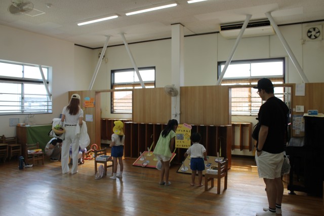 おうちの人と一緒に、幼稚園を回って色んな遊びを楽しみました☆ コーナーの看板は、たんぽぽさんが描いてくれたんですよ~