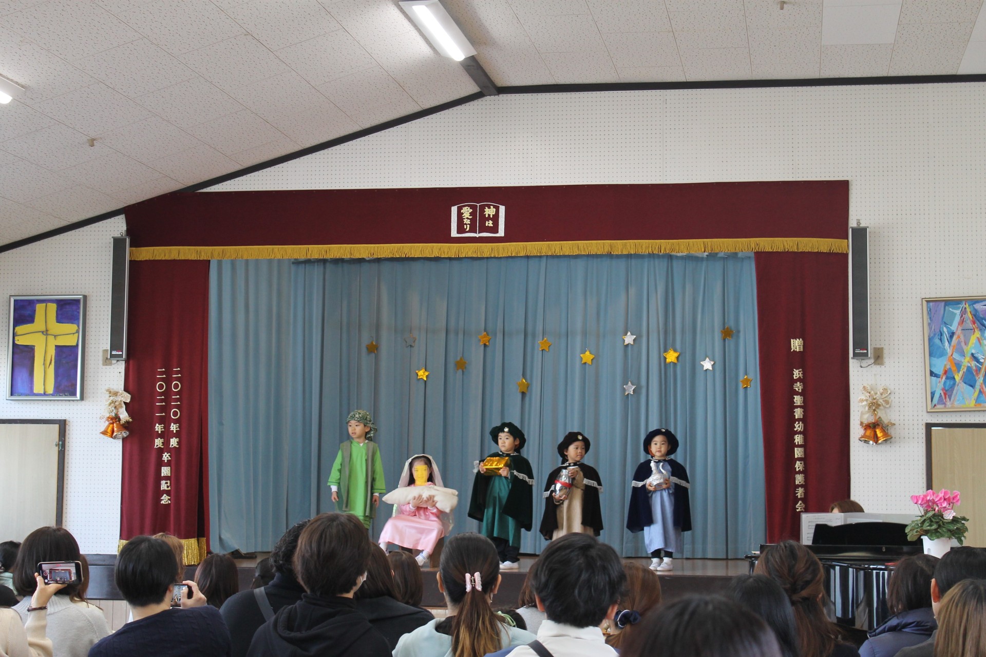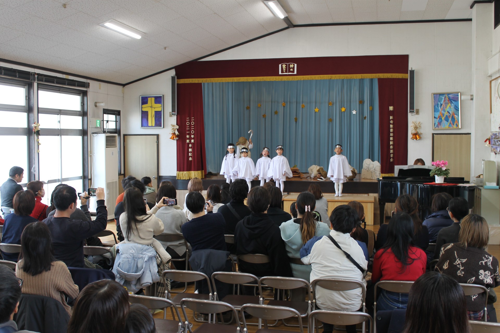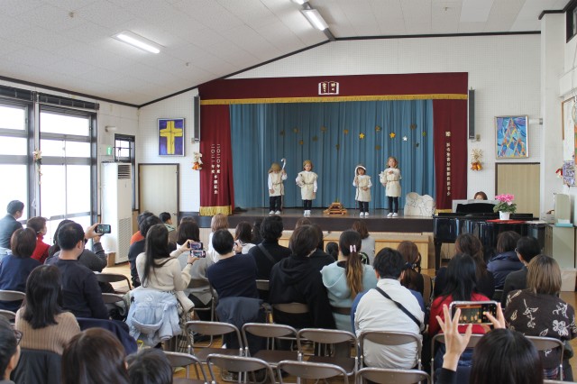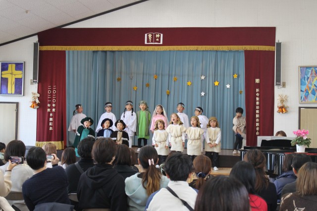 イエス様のお誕生を世界中でお祝いするクリスマス。子どもたちは、イエスさまのお誕生のお話しを聖書から少しづつ聞き、喜んでクリスマス祝会の日を迎えます。アドベンツクランツを一本をずつともし、祝会の日を待ちつつおうちの人へのプレゼントを作り、舞台での劇の練習、導入、役決め、劇への取り組み…毎年毎年色んなことがありますが本当に喜んで楽しんでる様子がうかがえます。