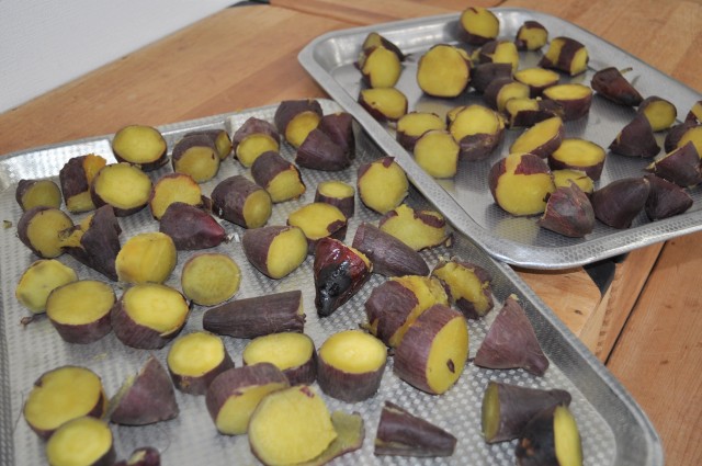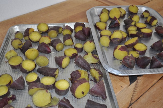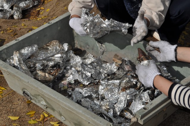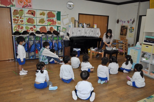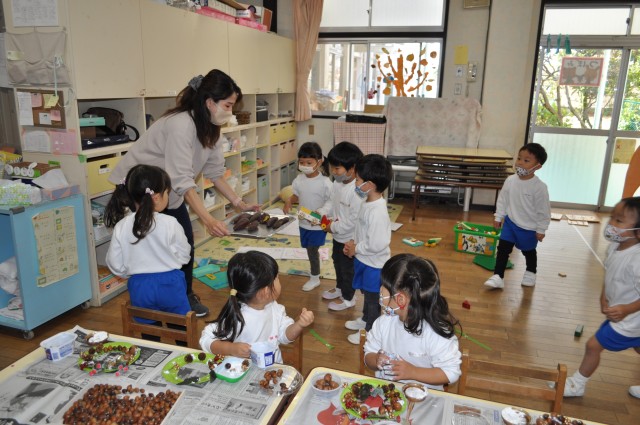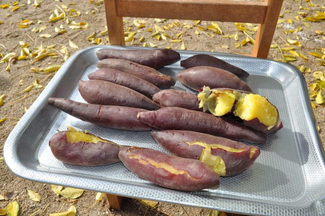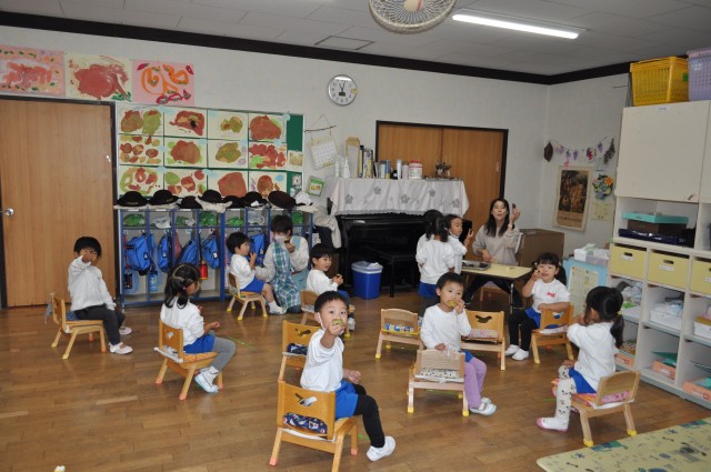 「やきいも、できたよ~」の合図に、子どもたちは大喜び!はやく食べたい気持ちがいっぱいで、手洗いもパパっと終わらせてパクリ。「おいしい」「あまいね」「ほくほくしてる」「おかわり~!」の声があがり、みんなたくさん食べていました☆