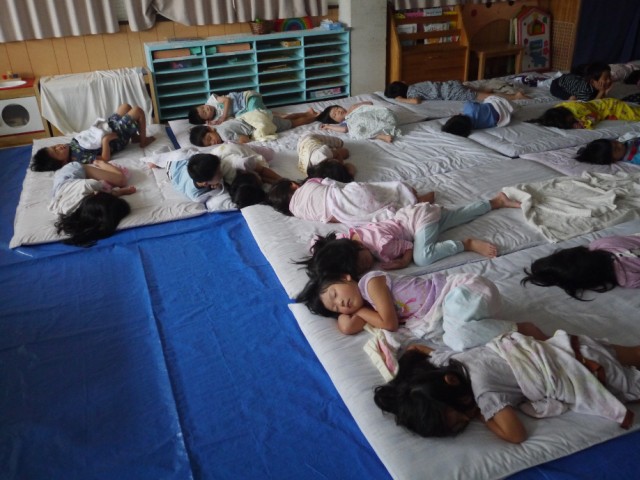 みんなぐっすり眠り、パチっと目を開ける子もいれば、ウトウトしている子も♡ 「おはよう」と声をかけると、いい笑顔をみせてくれました。