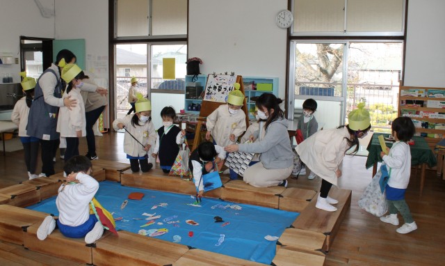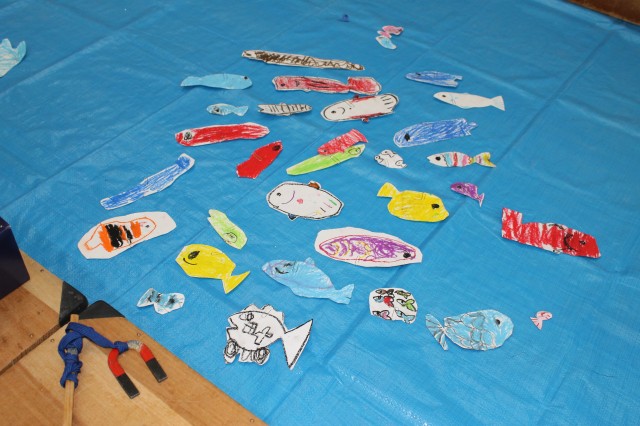 子どもたちからたくさん意見がでて、魚つりをすることになりました。