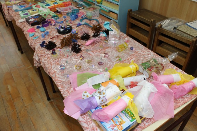食べ物、おもちゃ、絵本、勉強道具、宝石類や飾り他ができました。