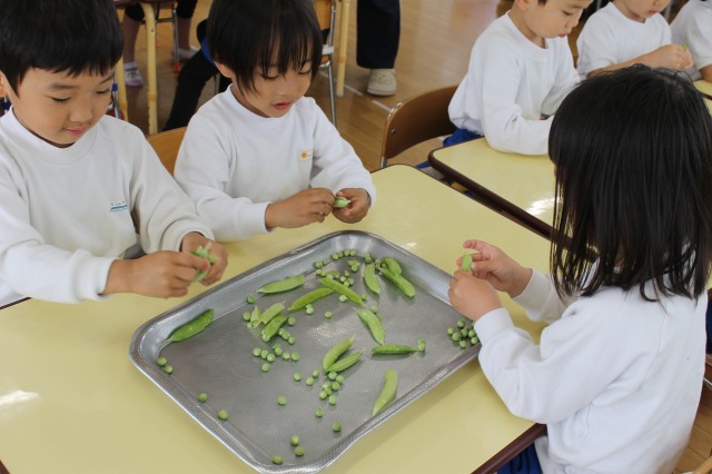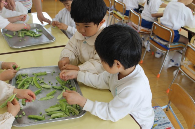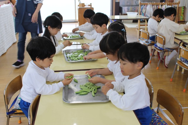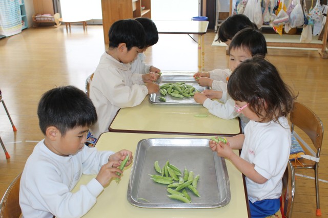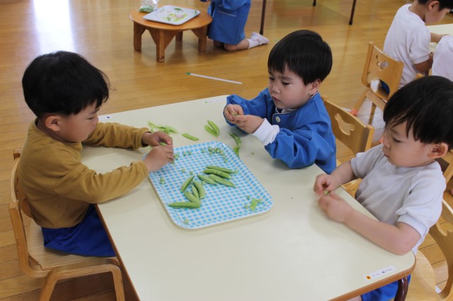 さやえんどうの皮むきをしたよ